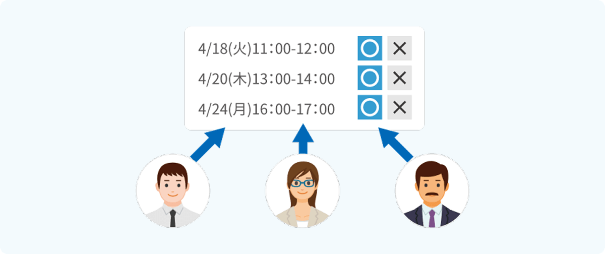 全員が無理なく参加できる日時を、日程調整の担当者が提案できればベストですが、メールや電話での日程調整でこれを実現するのは、難しいケースも少なくないでしょう。