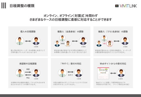 - 受付カレンダー作成(グループ利用含む)、日程調整、ウェビナー実施に上限はなく無制限